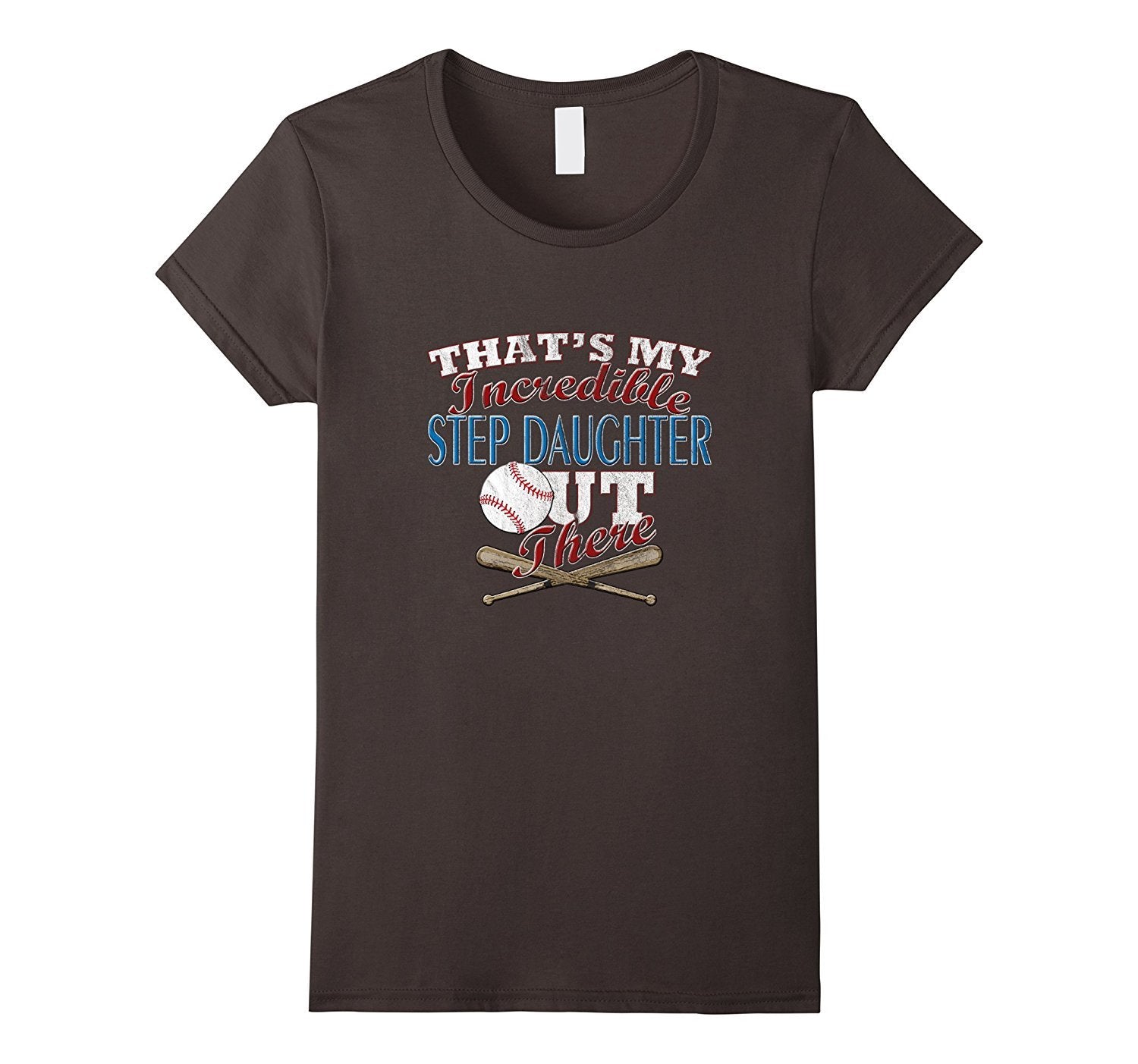 That's my incredible step daughter out there with a picture of a baseball and two crossed baseball bats. Perfect for the step mother or step father of a baseball player, pitcher, catcher or hitter to wear to the diamond. Girls playing baseball.